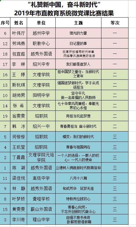 日前,市教育系统公布了“礼赞新中国·奋斗新时代”主题微党课大赛获奖名单,我院张希老师的作品《七十华章风雨兼程,奉献无界初心永恒》紧扣大赛主题,思路清晰,内容丰富,赢得评委和观众一致好评,经过激烈角逐,最终荣获个人二等奖。