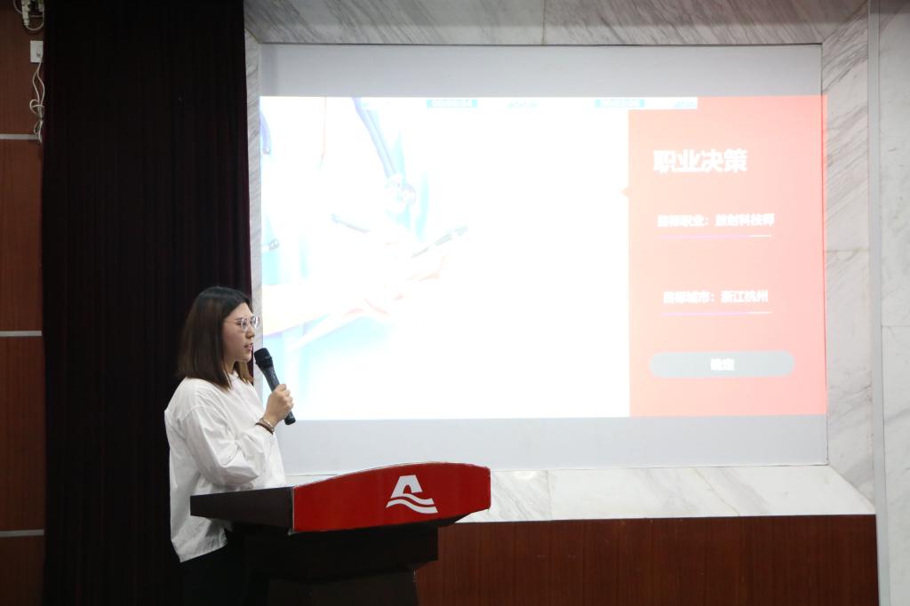 决赛分主题陈述、职业体验感悟和现场答辩三个环节。每位选手从自我分析、职业分析、职业定位、计划实施、评估调整等方面进行了阐述,并通过人物访谈、情景模拟等方式展现职业体验,清晰的逻辑思维、独具特色的演讲风格吸引了在场评委老师以及观众的兴趣。结合选手们的展示,评委老师从职业目标的合理性、职业路径分析、人职匹配度、职业现状数据准确性、评估调整方向、职业体验感悟与目标职业契合度等方面进行了点评。