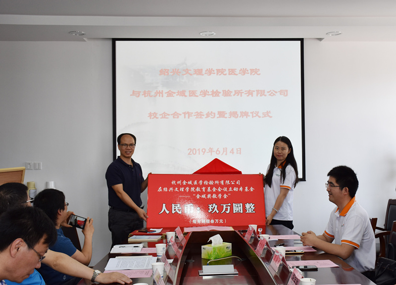 根据协议,从2019年起到2021年,杭州金域医学检验所有限公司将每年向我校捐赠3万元,成立“金域奖教学金”基金。用于开云电子竞技官方网站优秀学生和教师的奖励。
