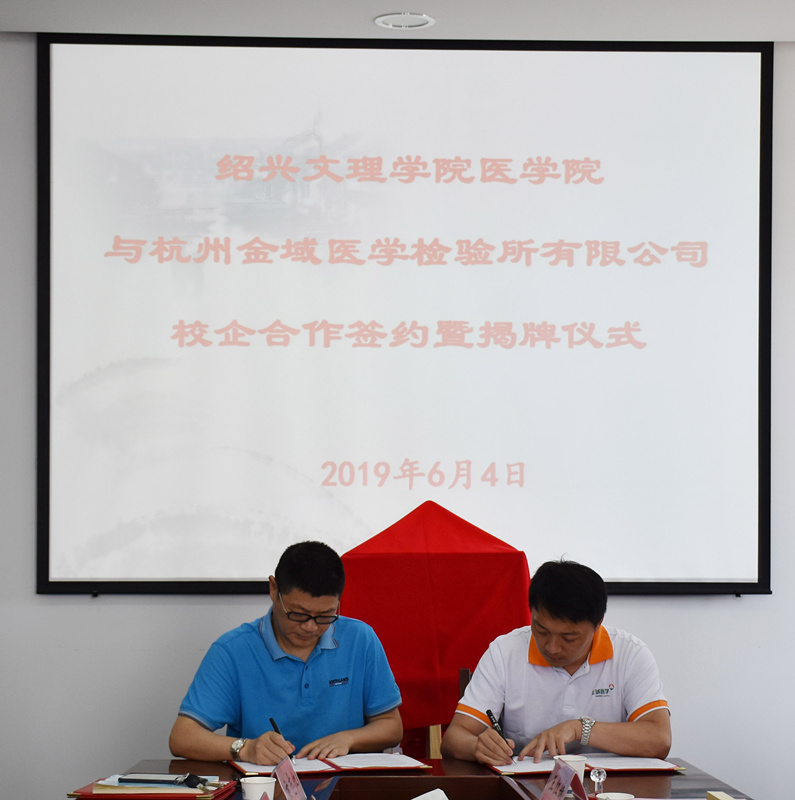 6月4日上午,我院与杭州金域医学检验所有限公司校企合作签约仪式在行政楼219会议室举行。杭州金域医学检验所有限公司副总经理祝宇翀、缪敏娜,总经理助理罗伟良,学校对外联络处处长毛宇锋,开云电子竞技官方网站常务副院长葛建荣,双方相关职能部门负责人和医学检验技术专业师生等40余人参加了签约活动。