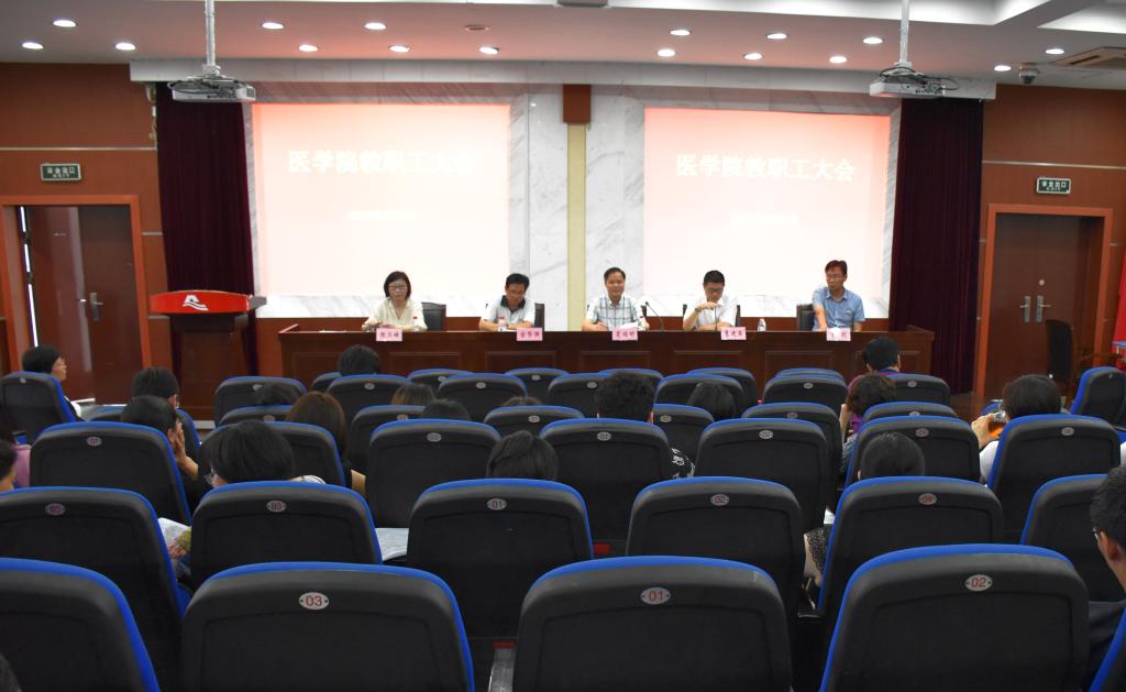 常务副院长葛建荣代表学院总结和回顾了2019年上半年学院的主要工作,并部署了暑假期间的主要工作任务。他从教育教学、研究生工作、专业学科建设、科学研究、医教协同、师资队伍建设、实验室建设、党建思政等方面梳理回顾了学院上半年的工作。葛院长指出,在全体教职工的共同努力下,在党政班子的团结协作下,以内涵建设为抓手,上半年学院各项事业稳步推进,办学水平得以进一步提升。