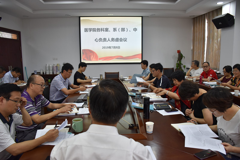 7月8日下午,2019年暑期各科室、系(部)、中心负责人务虚会在行政楼219会议室召开,会议由夏瑞明书记主持。