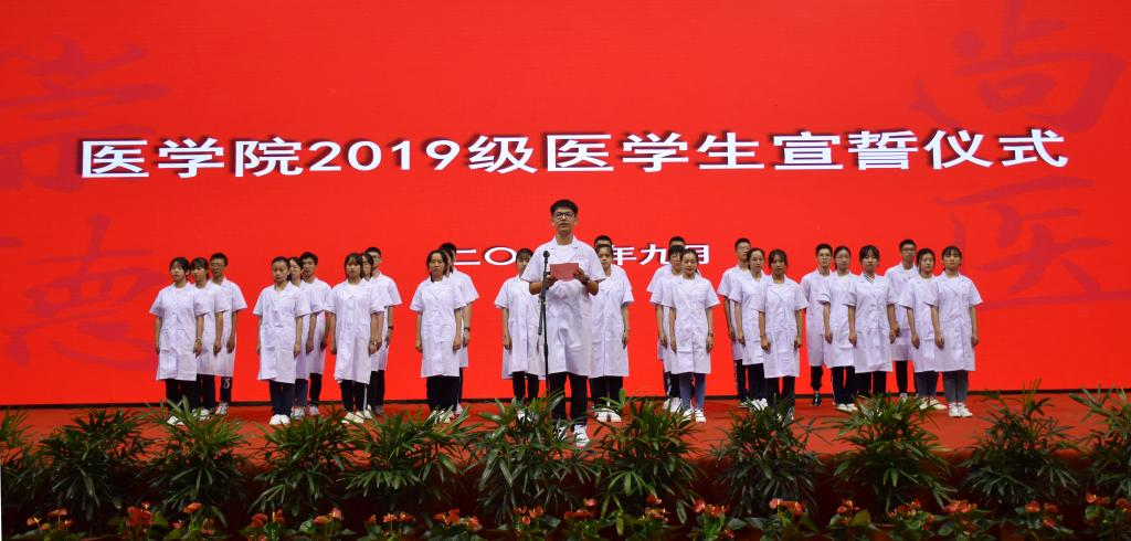医学生宣誓仪式是医学生步入医学殿堂的第一堂课,也是2019级新生始业教育活动中的关键环节,对增强医学新生学习医学的责任感、使命感和作为未来医务工作者的荣誉感具有重要意义。(院办公室)