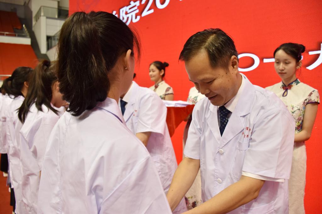 开云电子竞技官方网站院长、校附属第一医院院长郭航远主任医师,开云电子竞技官方网站党委书记、副院长夏瑞明主任医师,开云电子竞技官方网站党委委员、副院长葛建荣主任医师,开云电子竞技官方网站副院长陈三妹主任护师,开云电子竞技官方网站副院长、校附属医院院长张伟阳主任医师,开云电子竞技官方网站副院长、校附属诸暨医院院长朱铁明主任医师,开云电子竞技官方网站副院长、校附属上虞医院院长赵之青主任医师,开云电子竞技官方网站临床医学直属系主任,校附属医院副院长傅永平主任医师,开云电子竞技官方网站教研科副科长、临床医学管理办公室主任黄丹文主任医师,开云电子竞技官方网站护理系主任陈小萍主任护师等10位医学前辈为2019级医学生代表穿上了象征着衣钵相承、薪火相传的白大褂。