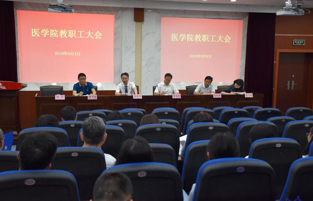 9月4日下午,学院在财贞楼学术报告厅召开全院教职工大会,院党委书记夏瑞明主持会议,会议总结了学院2019年暑期工作并部署新学期工作。