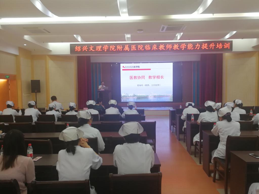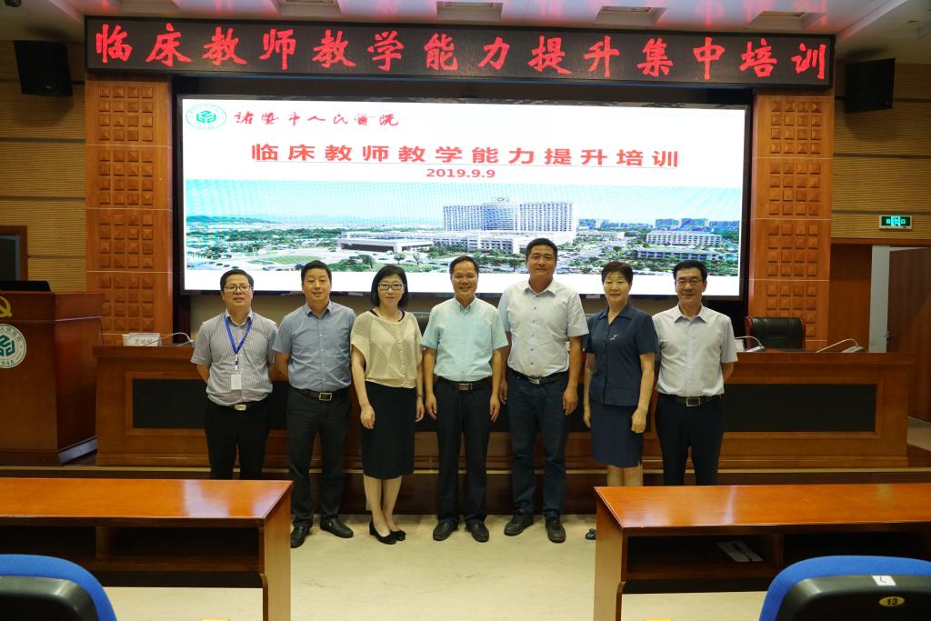 由我院夏瑞明教授、张金萍教授、陈三妹教授和孙一勤博士等组成的专家团队赴附属诸暨医院、附属嵊州医院、附属第一医院和附属上虞医院四家医院,围绕“医教协同、教学相长”、“打造临床金课”、“案例教学示范课”和“法洛四联症示范课”等四个专题展开集中培训。培训班使7所直属和非直属附属医院的校、院聘兼职临床教师、见习带教、实习生授课、教学查房及病例讨论等近1300名教师直接受益,达到了集中培训、全面提升临床教师教学能力的目的。