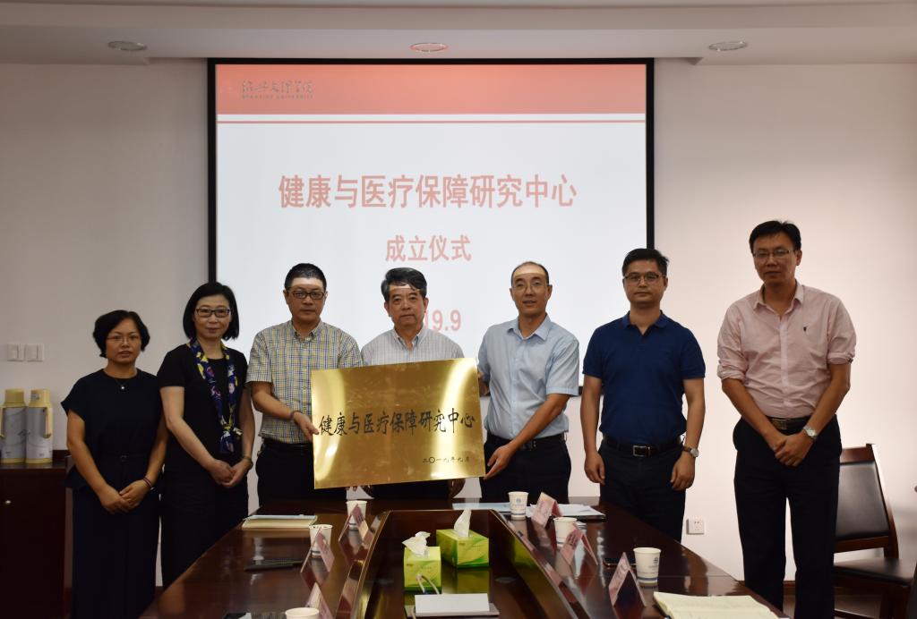 仪式上,张剑副院长宣读《关于成立健康与医疗保障研究中心及干部聘任的通知》文件,杨勇书记、王华锋处长及葛建荣常务副院长共同为健康与医疗保障研究中心揭牌。