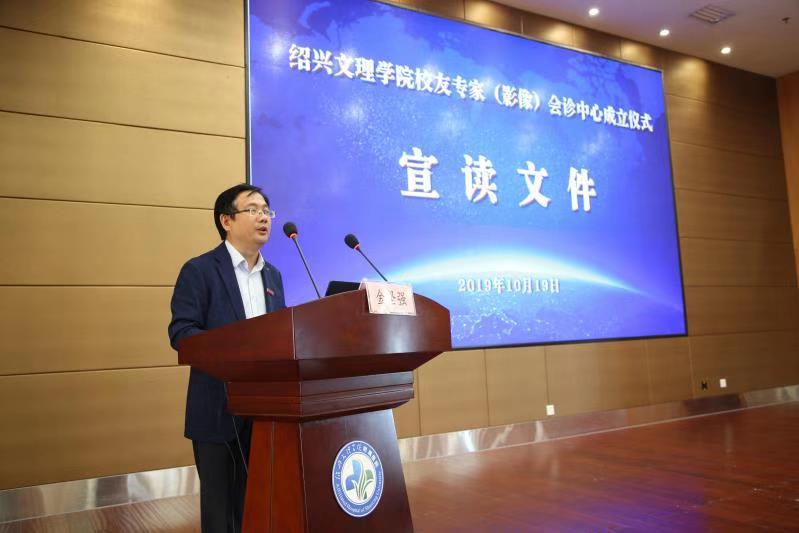 成立仪式上,开云电子竞技官方网站党委副书记金坚强宣读《关于成立绍兴文理学院校友专家(影像)会诊中心的通知》。
