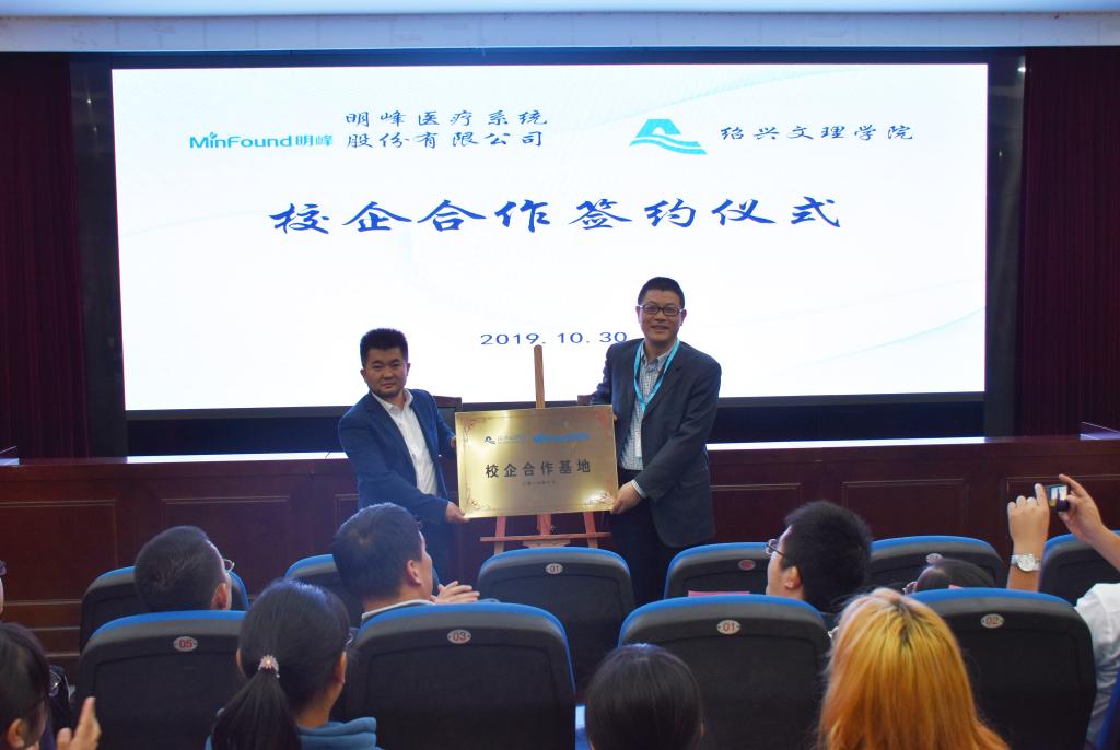 郑伟简要介绍了金域奖学金设立的背景和金域医疗集团的发展历程,并对学校办学110周年表示祝贺,愿意为绍兴大学的实现和高水平的应用型大学的建设提供支持。陈胜朝表示,能够在绍兴文理学院开云电子竞技官方网站设立奖学金是对明峰医疗的支持与肯定,希望能够在未来能够与学院有更好的合作。