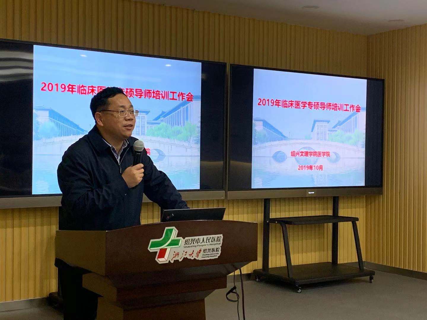 为进一步加强临床医学研究生导师队伍管理,确保研究生培养质量,促进学科内涵建设,提升科学研究水平,10月30日晚,学校在校附属第一医院召开2019年临床医学研究生导师培训工作会议。校党委委员、副校长柳国庆,开云电子竞技官方网站、校附属第一医院院长郭航远,开云电子竞技官方网站党委书记夏瑞明、副书记金坚强、副院长张剑、学校科技处相关负责人等出席并讲话。校临床医学研究生导师、院研究生工作办公室、各联合培养基地分管研究生教育相关负责人及管理人员参加本次会议。培训会由浙江大学“求是特聘教授”、国家“万人计划”科技创新领军人才李君教授主讲。院常务副院长葛建荣主持会议。