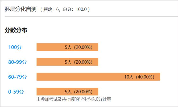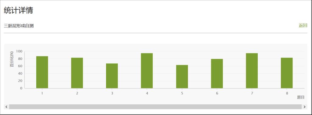 课堂开展同步的交互式学习:首先对课前的自测情况做简要点评(图10);其次对布置的课后主观题作业(人类成功受孕的条件)进行学生互评,该作业基于教材中的“插入框”“子宫内膜容受性”延伸,每人将评价3位学生的作业,经充分的讨论,与学生形成基本一致的意见。以上在30min内完成。