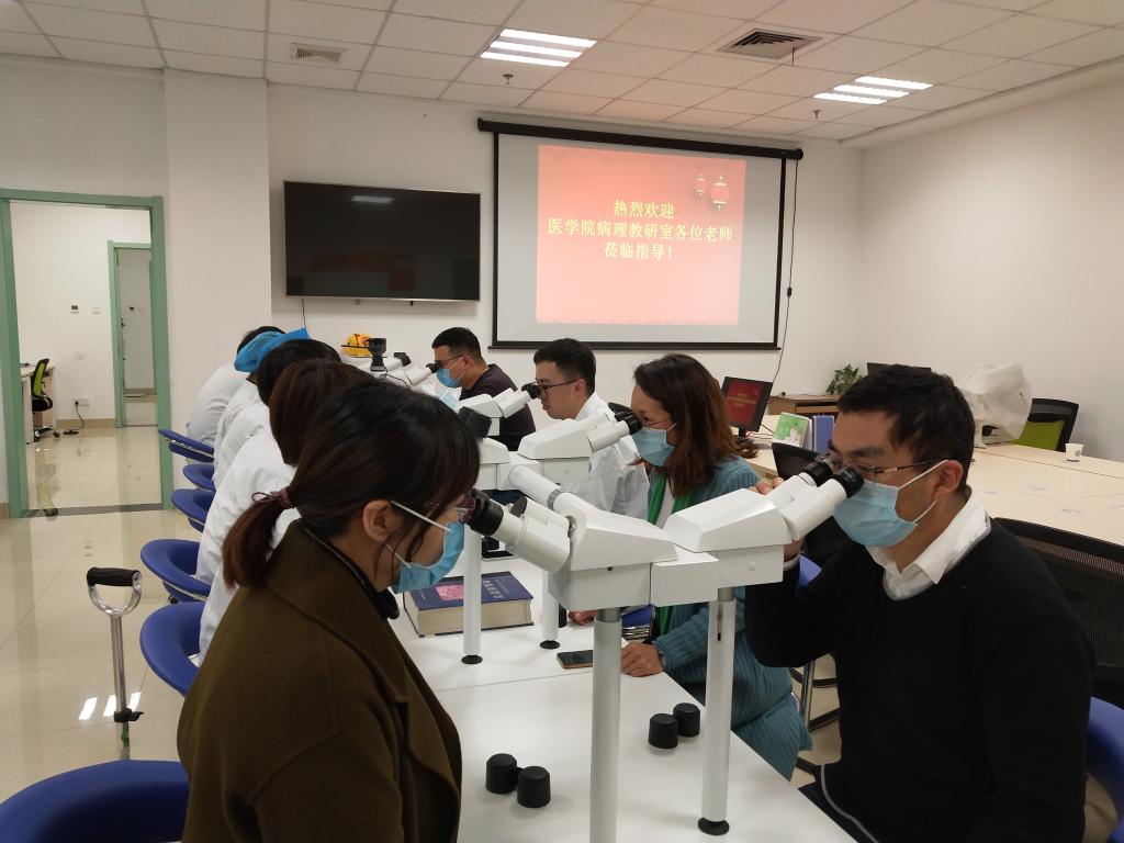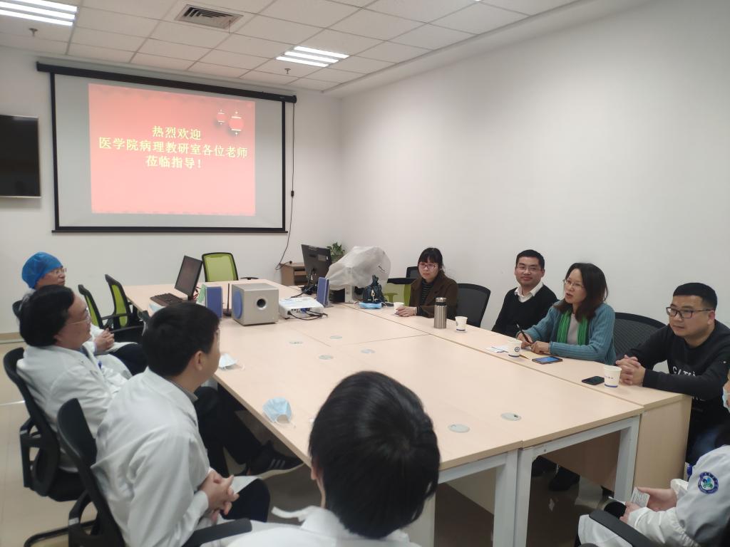 为适应新医科教育发展要求,提升医教协同工作内涵,深化落实学院有关“学院和医院相互对接,基础和临床相互融合,观念和知识及时更新,努力提升教师教育教学科研能力”的要求,4月10日下午,我院病理学教研室主任张巧英一行赴校附属医院病理科开展结对和首次教研活动。