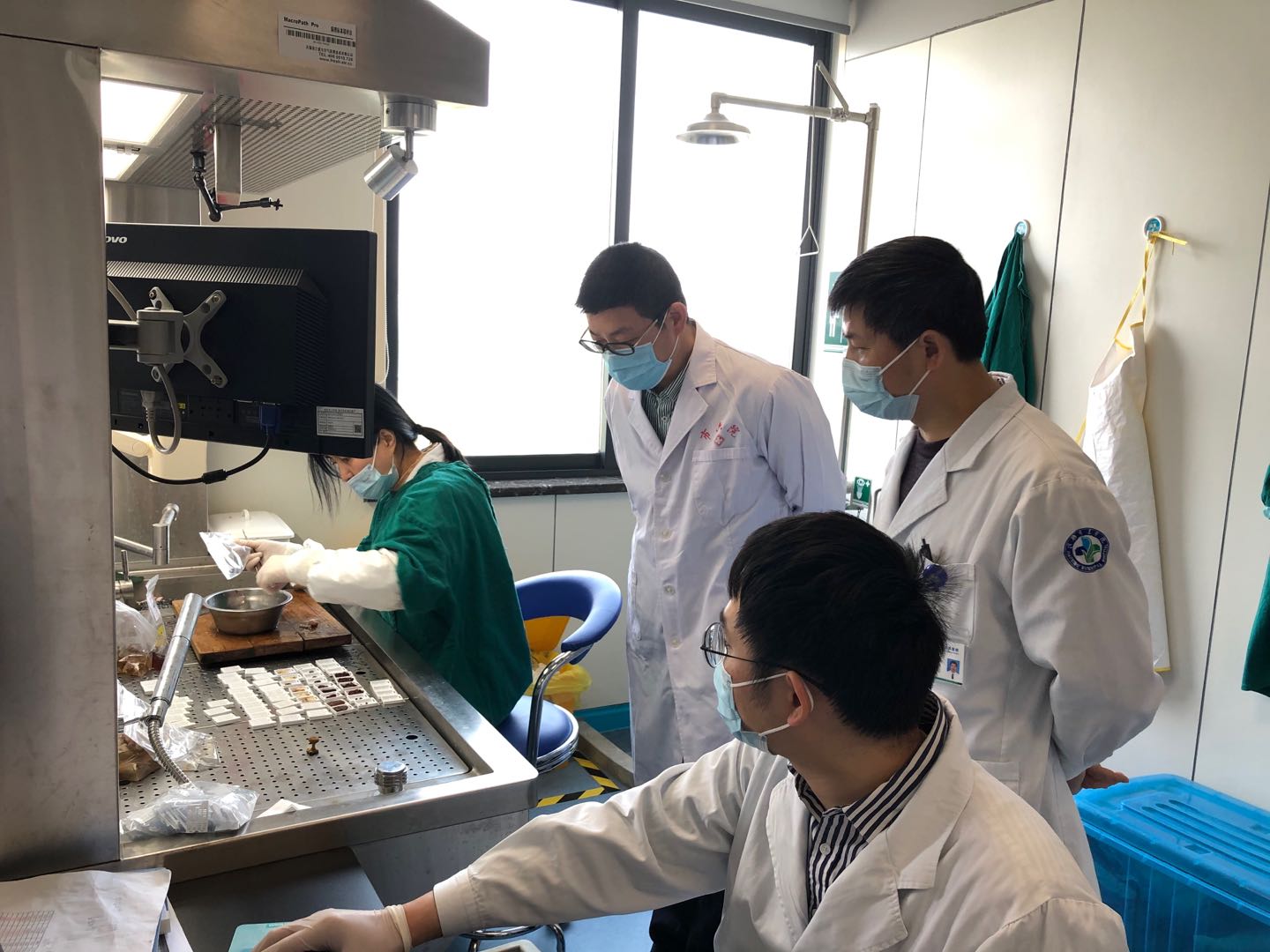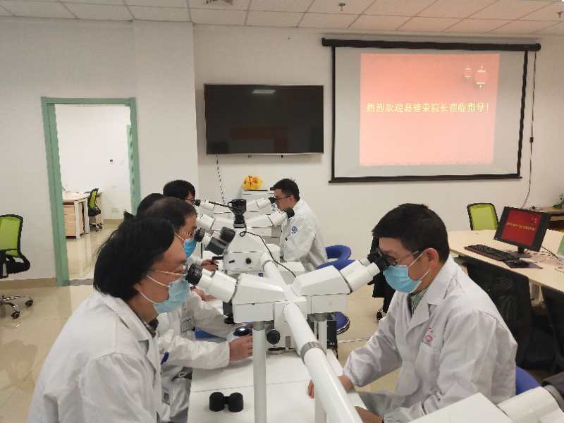 葛院长指出,病理是 “医生的医生”,在疾病诊断的各种方法中,病理诊断有至关重要的决定性作用,病理诊断水平的高低,不仅关系到患者的健康安危,还反映了医院的总体医疗质量和服务能力。病理制片技术是病理诊断的重要依据,病理制片技术的规范与否,制片质量的好坏直接影响病理诊断医生的诊断结果。葛院长参加了校附属医院病理科的病理大体标本取材诊疗活动,观看病理切片,并与校附属医院病理科的临床教师集体讨论了肺隐球菌病、乳腺癌、甲状腺癌、腮腺多形性腺瘤等疑难复杂案例。葛院长表示,医者是需要有不断探索精神的。只有对未知领域的不断探索,才能不断提高医疗水平,只有深入临床一线,掌握第一手临床资料,才能不断地丰富自己的经验。
