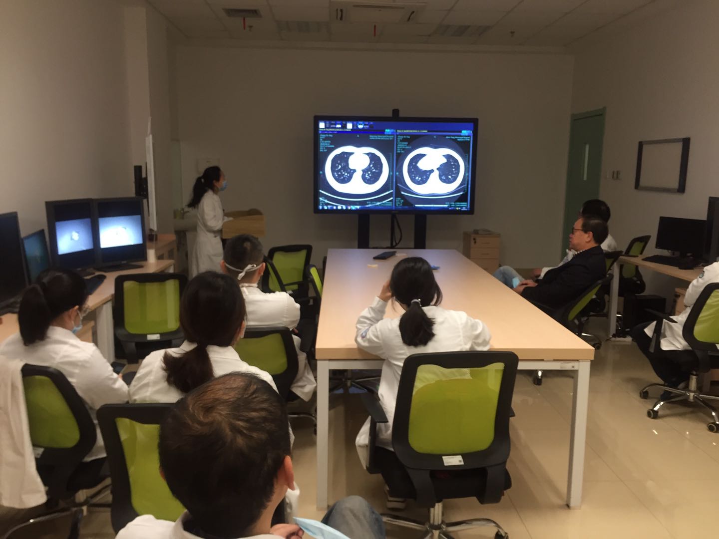 4月24日上午,马玉富主任参加了校附属医院放射科的早晨读片讨论会,和放射科的医生们一起,对前二天的4个疑难复杂病例进行了集体讨论。读片会后,马主任与校附属医院放射科和超声科老师进行了沟通和交流,重点就疫情下的线上教学运行情况和遇到的问题进行了沟通,同时对学校开学后,返校后的学生如何开展临床见习和毕业实习作出相应的安排(医学影像系)