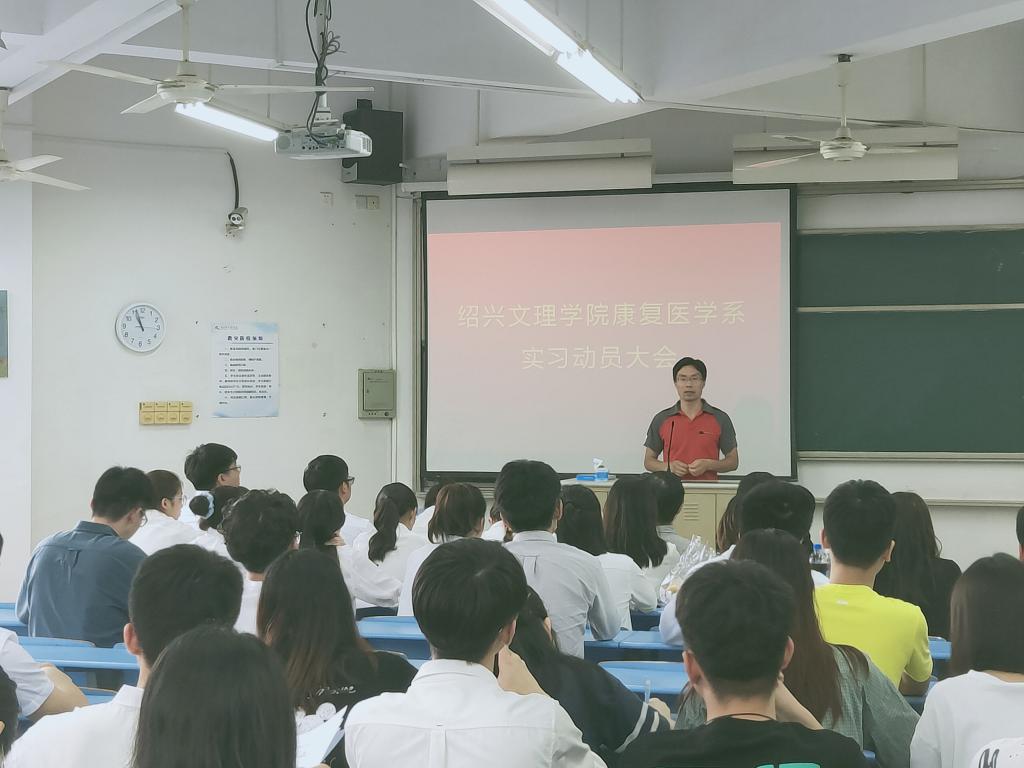 7月7日,康复医学系在2号楼319室召开康复治疗学2017级毕业生实习动员大会。康复医学系主任吴建红、副主任张亚军、教研科习正老师、班主任陈明敏老师以及康复治疗学2017级全体学生及参加了本次动员大会。动员会由康复医学系副主任董梁主持。