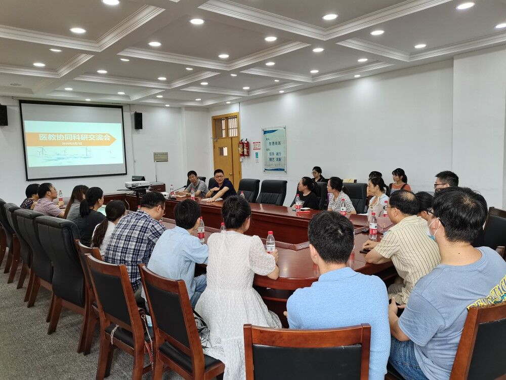 为促进学院与附属医院科研合作,开展医校协同申报各级科研项目、科研平台建设等工作,8月7日下午,校附属医院陈雪芳处长及相关科研骨干来学院开展科研工作交流会议。交流座谈会在科研楼409会议室举行,常务副院长葛建荣、朱柯武教授出席座谈会。