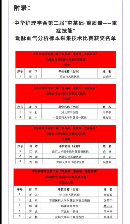 在中华护理学会主办的第二届“夯基础·重质量——重症技能”动脉血气分析标本采集技术比赛中,我校附属第一医院重症医学科副护士长、科室总带教金婷婷从来自全国的31名强手中脱颖而出,夺得比赛一等奖(唯一)及技能达人奖。