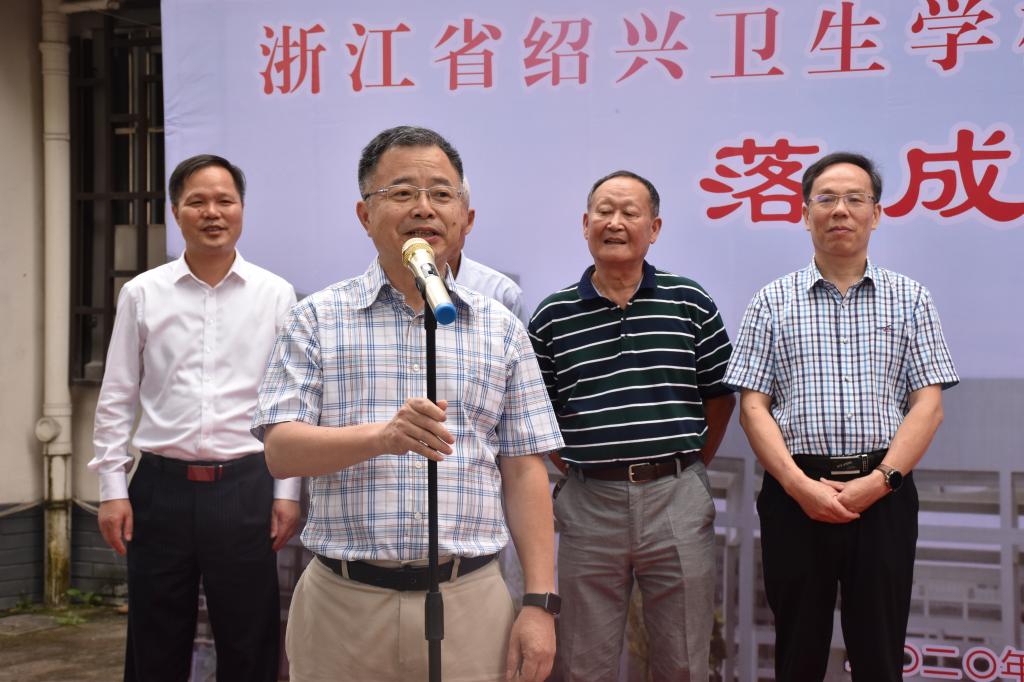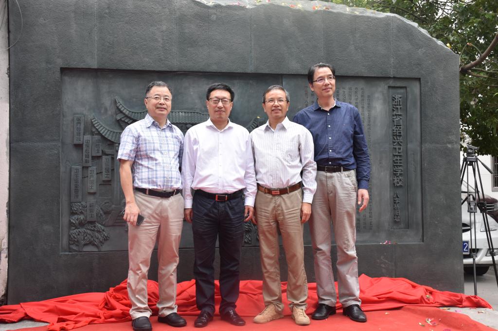 绍兴文理学院党委书记汪俊昌,绍兴文理学院校友总会副会长杨大明,原绍兴卫校校长、现宁波卫生职业技术学院党委书记任光圆,校友代表、东南大学附属中大医院院长滕皋军共同为浙江省绍兴卫生学校办学旧址纪念碑揭幕。