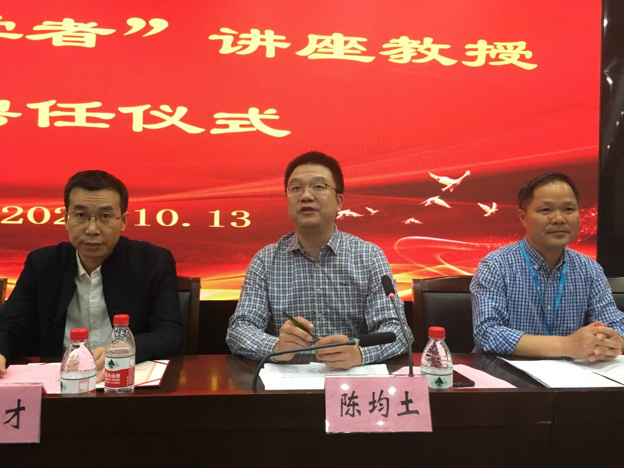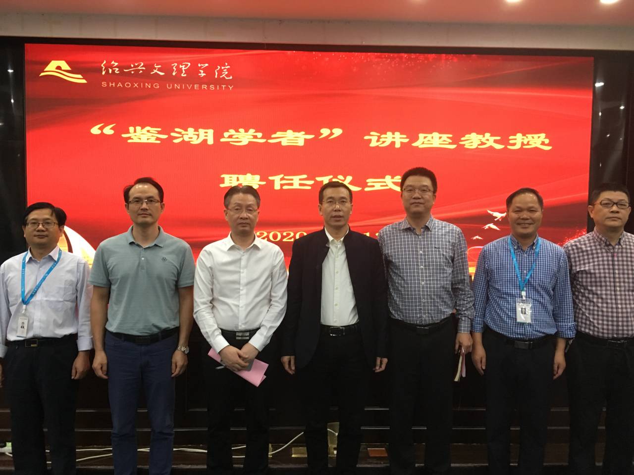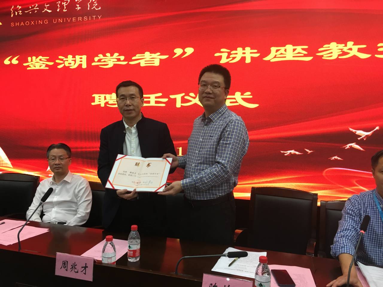 陈均土副校长为周兆才教授颁发“鉴湖学者”讲座教授聘书。