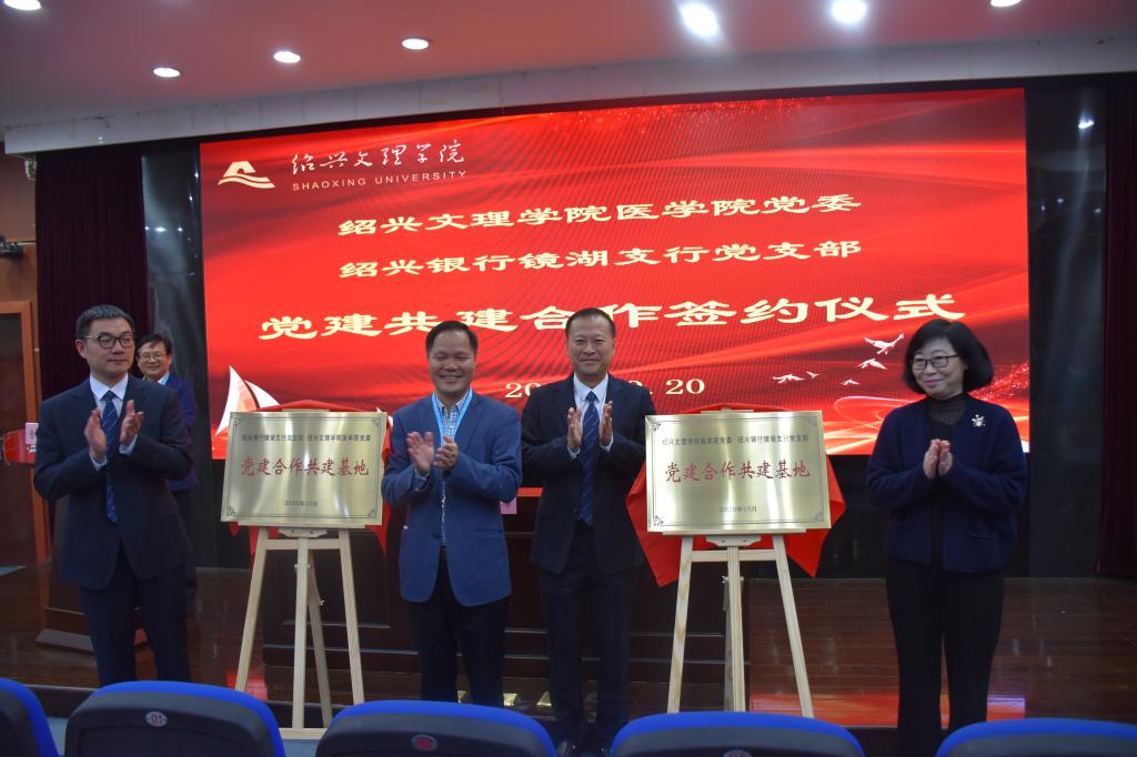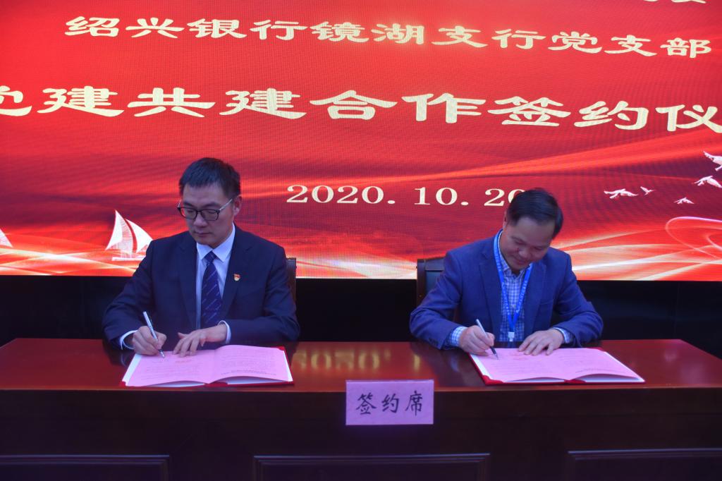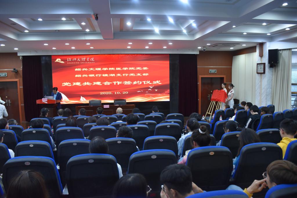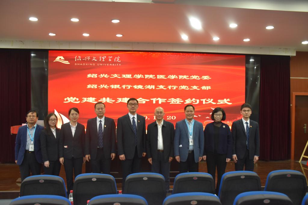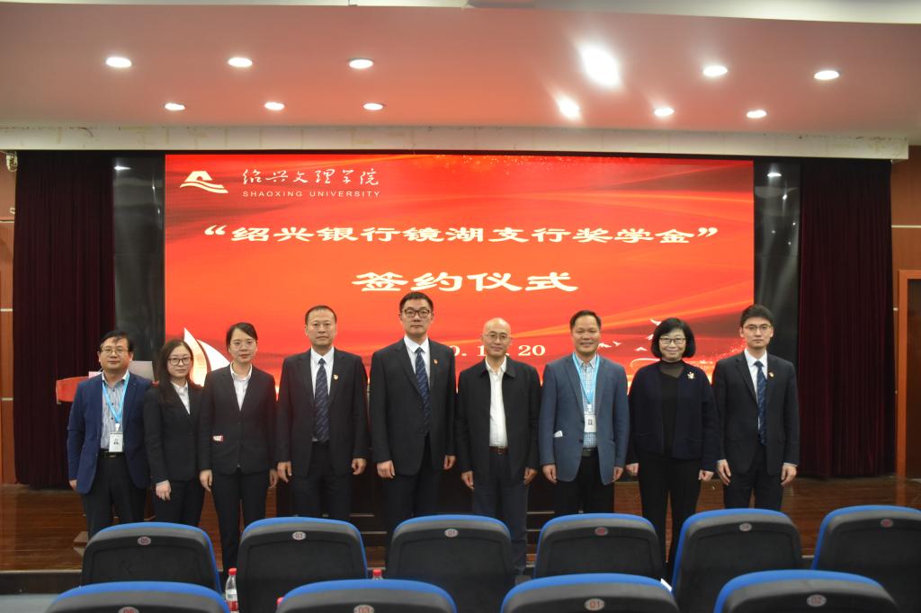 10月20日,学院党委与绍兴银行镜湖支行党支部举行党建共建暨“绍兴银行镜湖支行奖学金”签约仪式 。校对外联络处处长陈立、院党委书记夏瑞明、副院长陈三妹、绍兴银行镜湖支行行长王建刚、绍兴银行镜湖支行副行长邱波、绍兴银行镜湖支行行长助理陈益楠等出席签约仪式。仪式由院党委副书记金坚强主持。