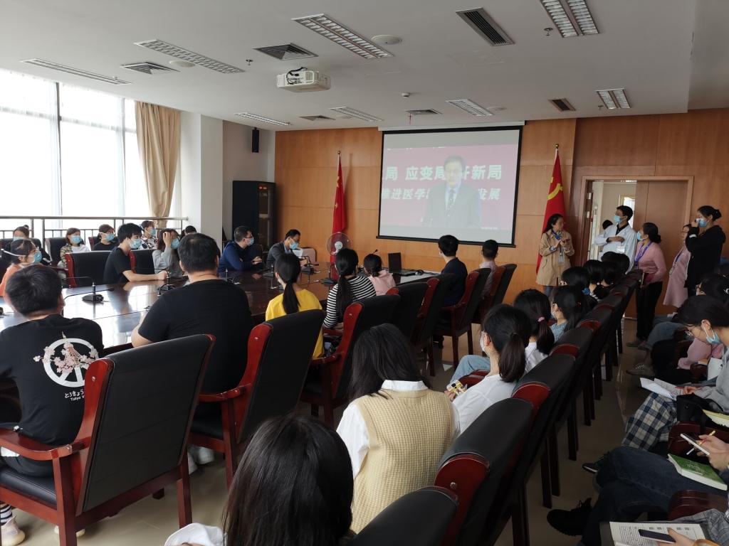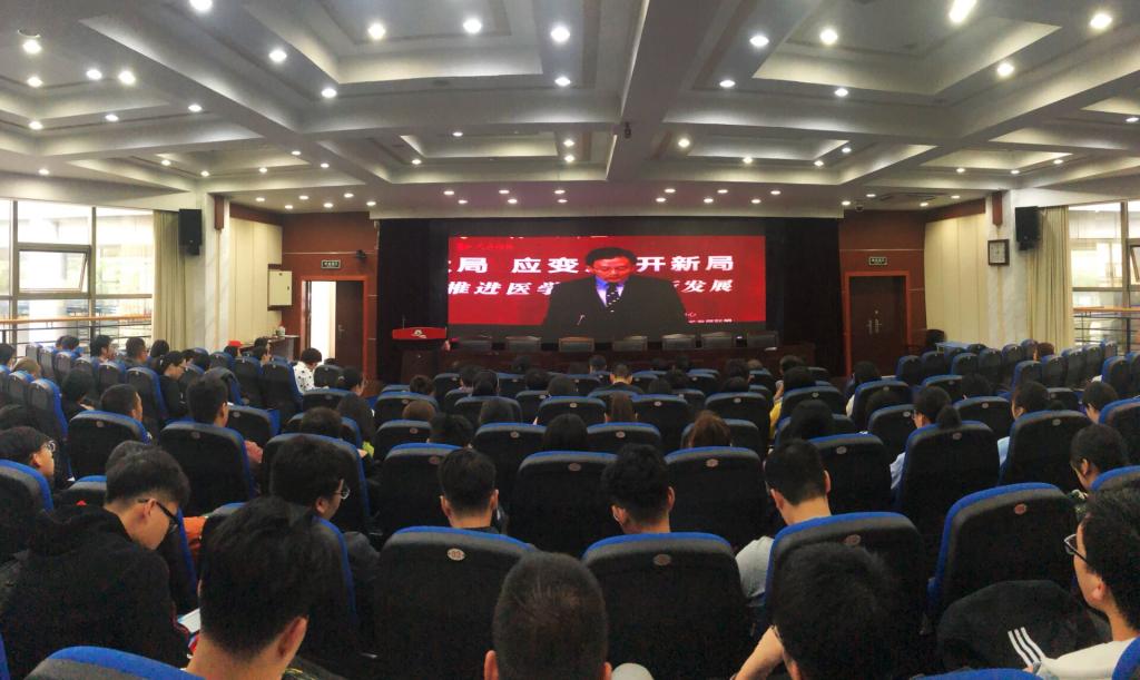 学院组织无课教师、学生代表在财贞楼二楼学术报告厅集中观看,各附属医院要求各教研室主任、教管人员集中观看。据统计,我院及附属医院共计150余人集中参加本次讲座,共同领会学习领导报告及相关文件精神。