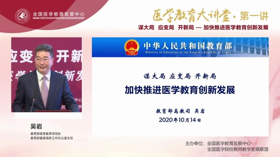 北京大学医学部及全国医学教育发展中心特邀请教育部高教司司长吴岩莅临医学教育大讲堂,担任开讲嘉宾,深入全面解读重要文件精神,为进一步加快推进医学教育改革创新,全面提高医学人才培养质量,做指导部署。
