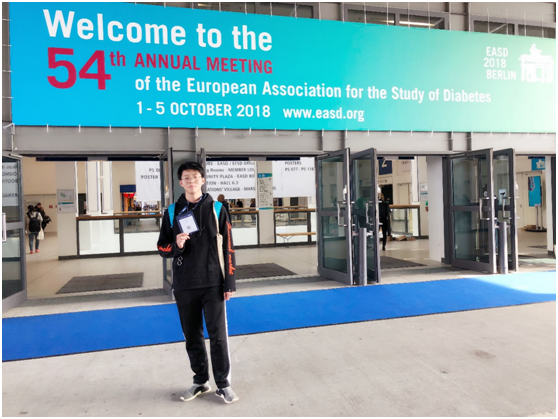 2018年10月1日至5日,第54届欧洲糖尿病协会年会(EASD)在德国柏林召开。2015级临床医学151班孙霁同学在大会上充分展示了我院学子的学术风采。