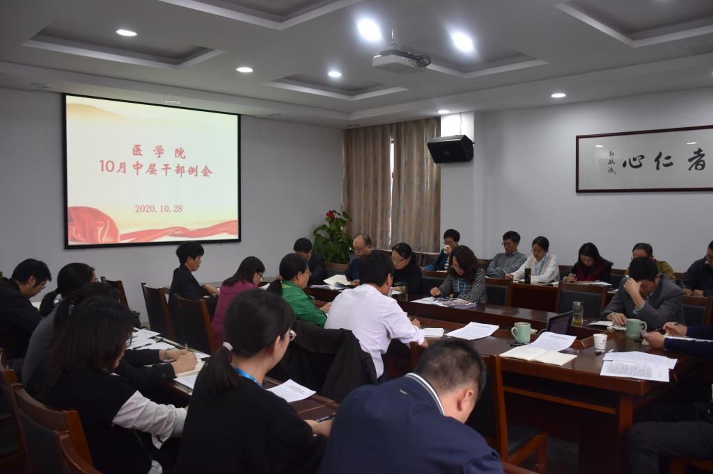 10月28日,学院在行政楼二楼会议室举行10月中层干部例会暨理论中心组学习会议。学院党政领导班子成员,系部、科室、中心、所主要负责人参加会议。会议由学院党委书记夏瑞明主持。