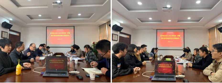 汇报会后,在219会议室先后召开了期中教学检查教师代表、学生代表座谈会,围绕人才培养质量达成度评价、学生考研等方面听取了师生们的意见和建议。(教研科)