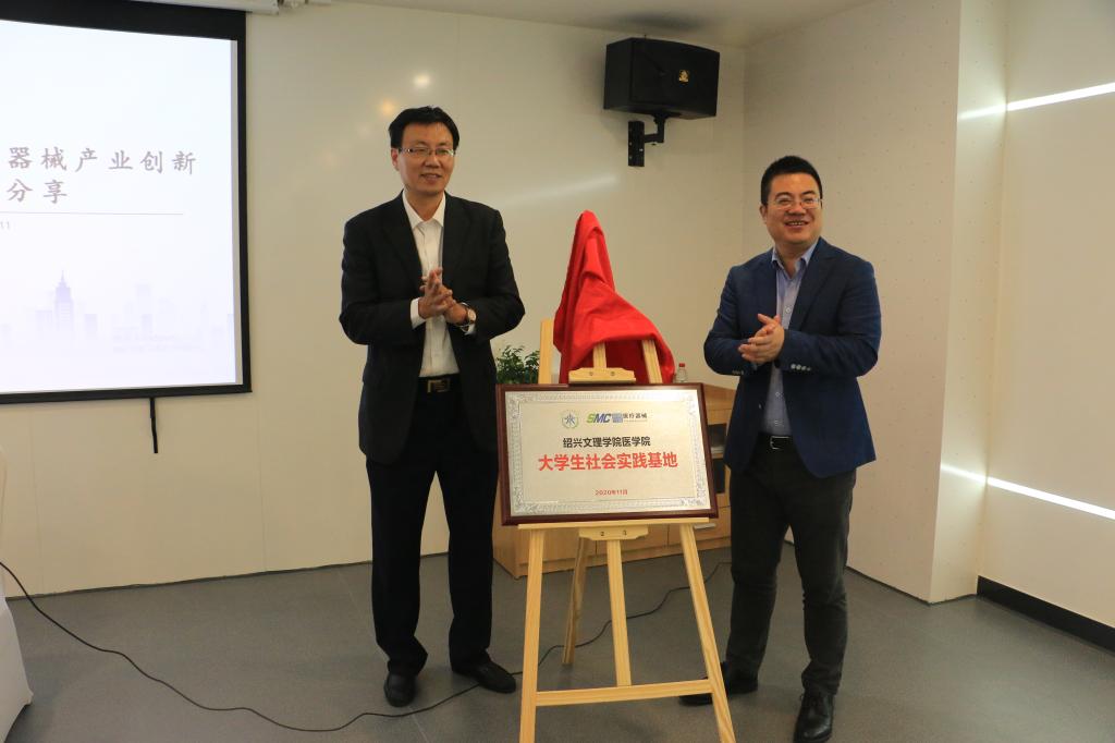 绍兴越城医疗器械产业创新服务综合体总经理丁芳伟热情接待了张剑副院长一行。根据双方协议,绍兴越城医疗器械产业创新服务综合体成为了我院大学生社会实践基地,张剑副院长与丁芳伟总经理共同出席了揭牌仪式。