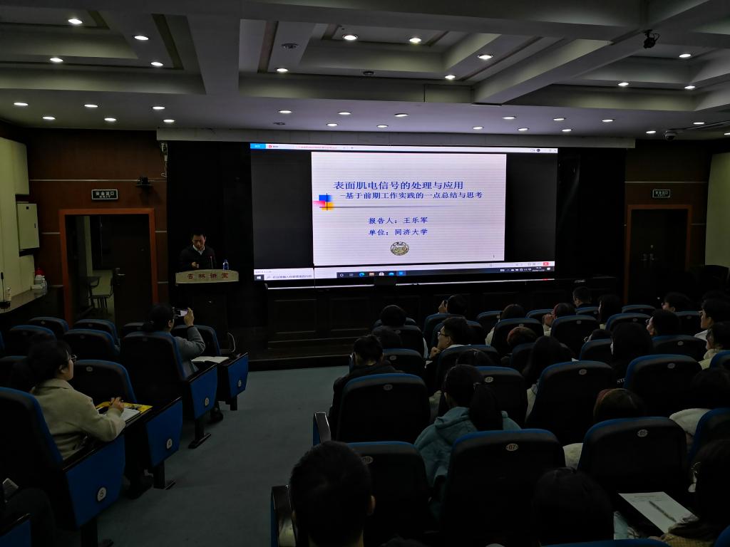 王博士从表面肌电信号的产生机理、采集、分析方法、临床应用等四个方面做了阐述,分享了他十多年的表面肌电研究心得。王老师的深入浅出的讲座让同学们初步认识表面肌电在康复医学领域中的应用与科研,获益匪浅。