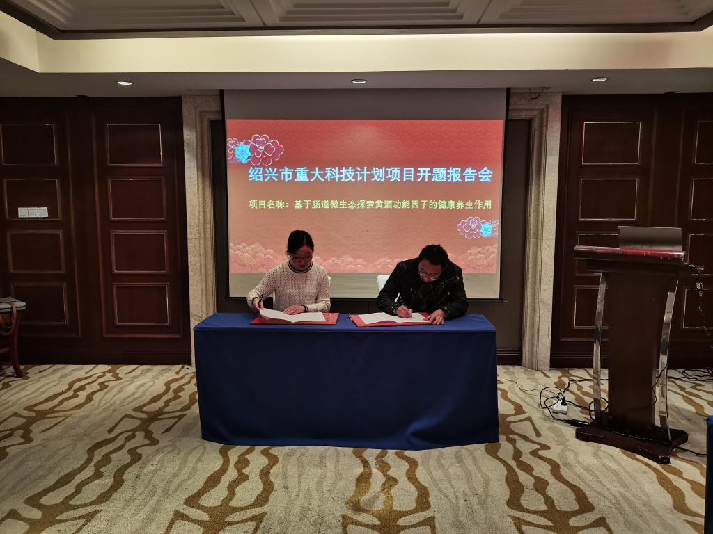 12月3日下午,我院举行绍兴市重大科技计划项目“基于肠道微生态探索黄酒功能因子的健康养生作用”的开题报告会,校党委委员、开云电子竞技官方网站院长郭航远教授出席报告会并发表讲话。学院党委书记夏瑞明、科技处处长奚柏君、学院副院长张剑、计财处副处长张依群、绍兴市人民医院副院长赵振华、绍兴市黄酒行业协会秘书长陈幼良、国家黄酒产品质量监督检验中心所长郑云峰以及项目合作单位负责人、项目组主要成员及研究生参加了会议。
