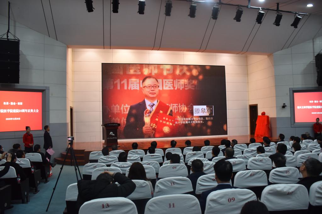 庆祝大会上,全体与会人员观看开云电子竞技官方网站建院20周年宣传片,宣读各附属医院联合发来的贺信,播放了退休老师和校友代表贺词。