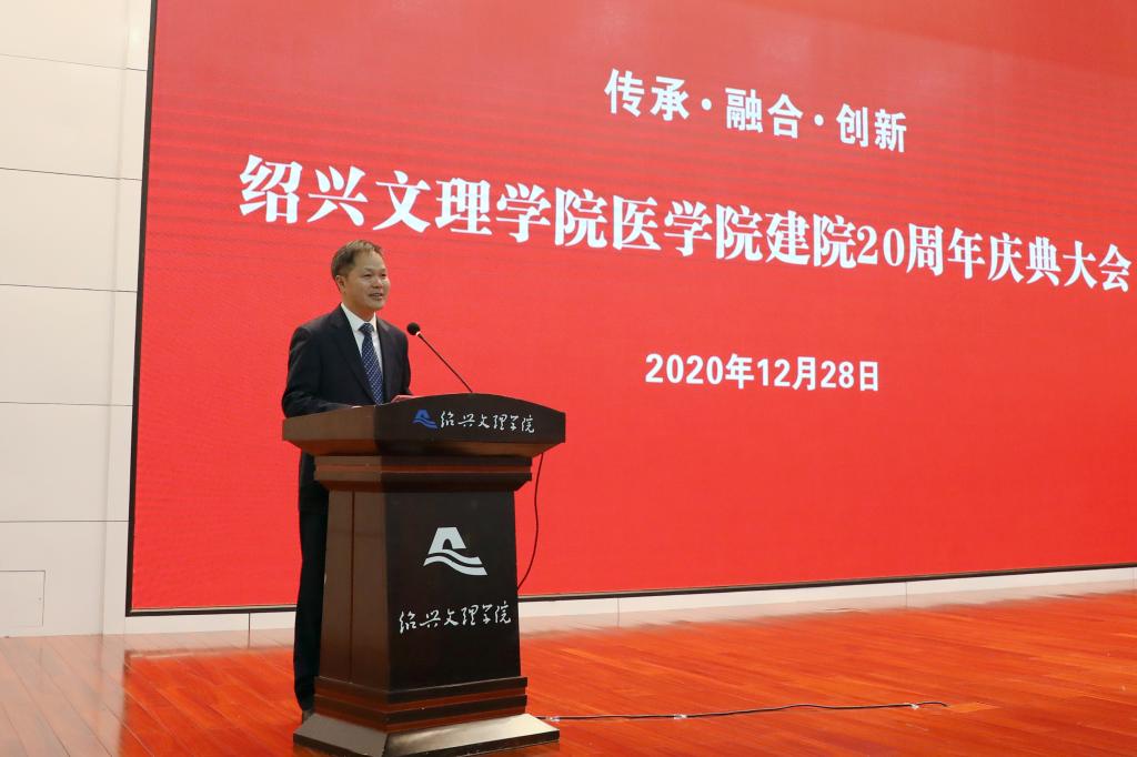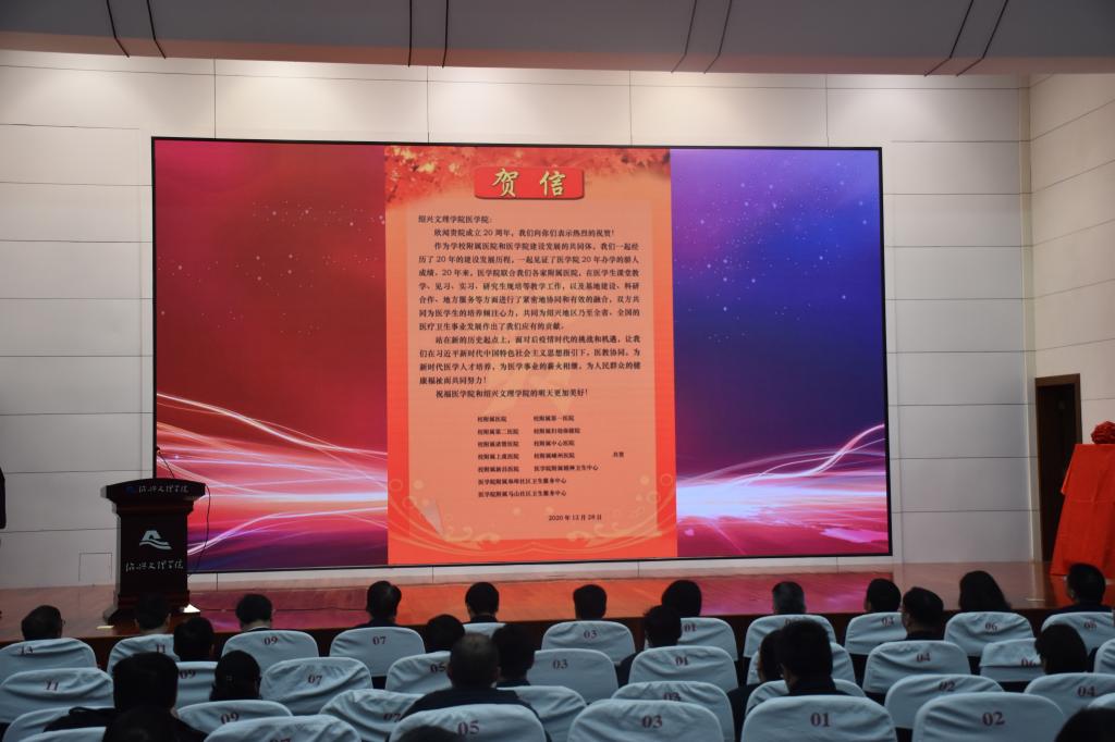 12月28日,绍兴文理学院开云电子竞技官方网站建院20周年庆祝大会在铁城报告厅举行。市政协副主席胡少云,市教育局党委副书记、副局长马成永,市卫健委副主任金红柱、学校党委书记汪俊昌、校长王建力、党委副书记张宏、纪委书记柯羽、副校长黄坚、副校长陈均土,校党委委员、宣传部长梁瑜,校友总会副会长杨大明、裘愉萍,各二级学院、职能部处、直属单位的主要负责人,校附属医院主要负责人、开云电子竞技官方网站附属精神卫生中心主要负责人、开云电子竞技官方网站附属社区卫生服务中心主要负责人、学院党政领导班子成员、教师代表、学生代表等参加庆祝大会。大会由院党委书记夏瑞明主持。