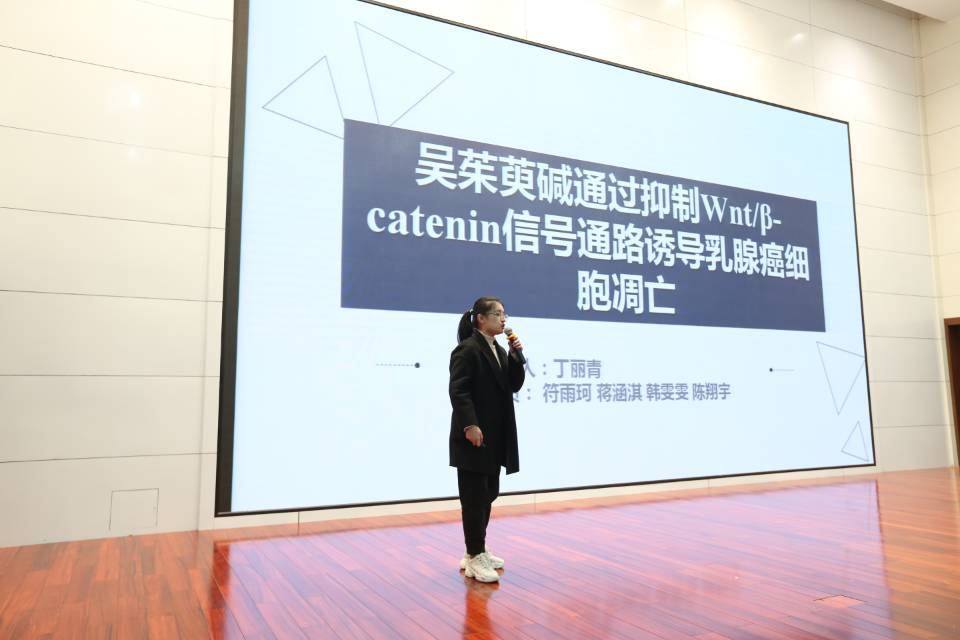 经过两个多小时的激烈角逐,陈耀项目组的实验设计《CircRNA-MiRNA-糖基转移酶调控轴介导CRC恶行进展的机制探究》荣获一等奖;周慕华组《积雪草酸通过线粒体级联反应诱导胃癌803细胞凋亡的机制研究》和许航组《吴茱萸碱调控Wnt/β-catenin信号通路对食管癌的抑制作用》荣获二等奖;朱辰昊组《远志皂苷元通过调控NF-kB信号通路抑制肺癌的作用机制研究》和杨天乐组《姜黄素对甲状腺未分化癌侵袭转移相关IncRNA NEAT1的机制研究》荣获三等奖;金旭东组《紫草素通过P13K/AKT信号通路对胃癌细胞增殖、凋亡的影响》,丁丽青组《吴茱萸碱通过抑制Wnt/β-catenin信号通路诱导乳腺癌细胞凋亡》,韩炯萍组《芥子碱诱导肺癌细胞凋亡的作用及其机制研究》和陆优组《大黄素通过P38信号通路对乳腺癌细胞抑制作用的研究》荣获优秀奖。