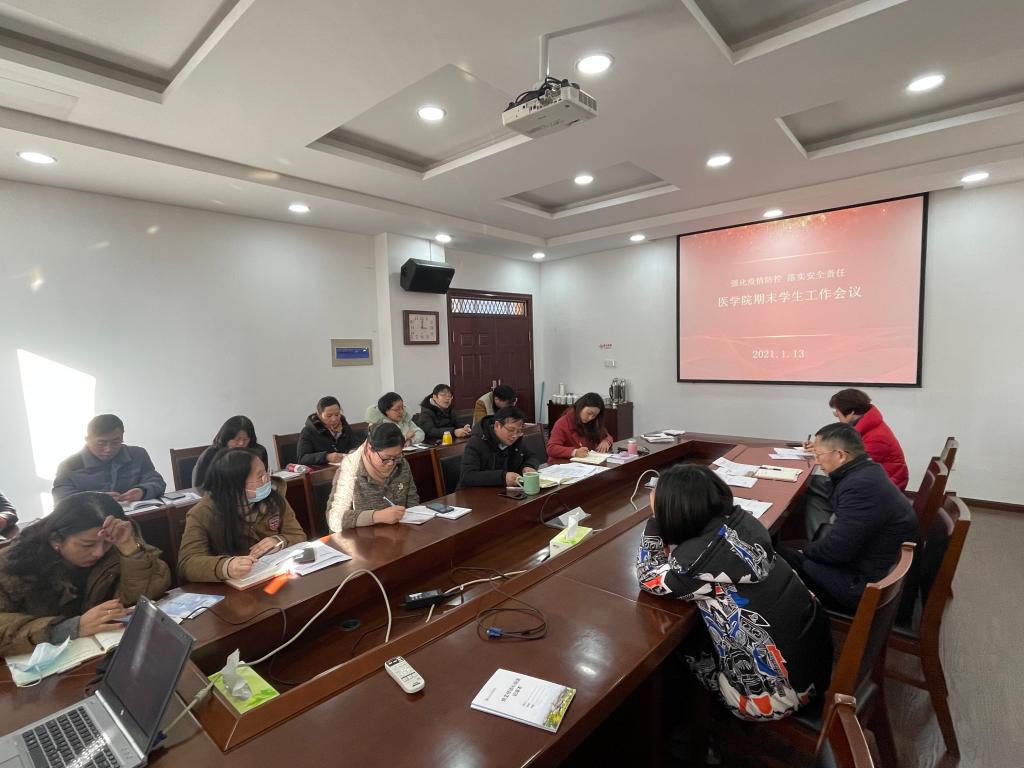 为积极落实学校疫情防控工作要求,压实安全主体责任,强化期末学生管理。1月13日下午,学院组织召开期末学生工作会议。院党委副书记金坚强作主题讲话,全体班主任和辅导员参加会议。