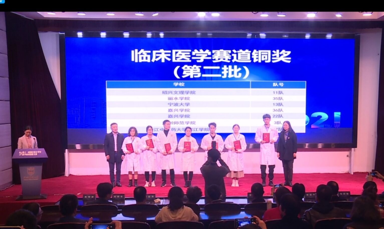 3月14日下午,经过两天的激烈角逐,第十一届浙江省大学生医学技术技能大赛在温州医科大学落下帷幕。由我院临床医学2016级学生组成的绍兴文理学院代表队在临床医学专业赛道中,荣获一项银奖、二项铜奖的佳绩。