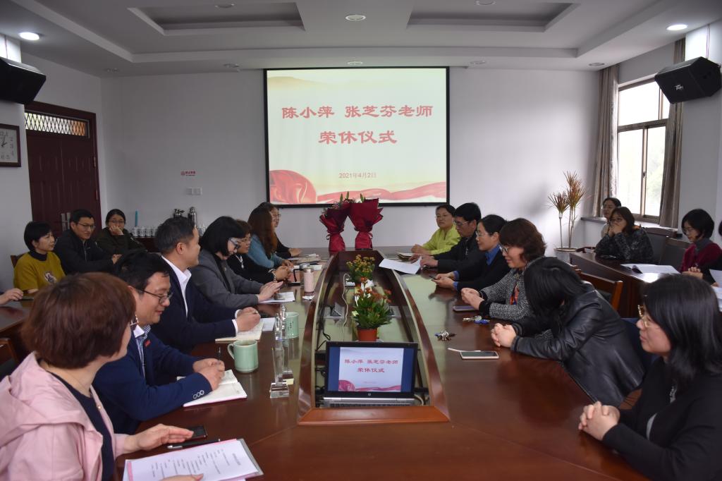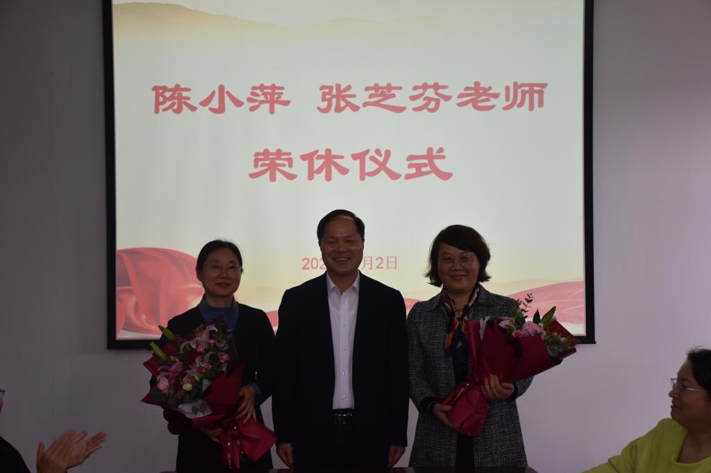 4月2日,学院在行政楼219会议室举行陈小萍和张芝芬两位老师的荣休仪式。院党委书记夏瑞明、党委副书记金坚强、副院长陈三妹,部分教师代表参加仪式。仪式由分工会主席吴建红主持。