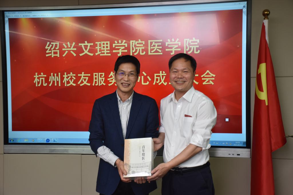1980届医士专业校友、原绍兴文理学院副校长、学校校友总会副会长兼开云电子竞技官方网站分会会长杨大明为服务中心成员颁发聘书。