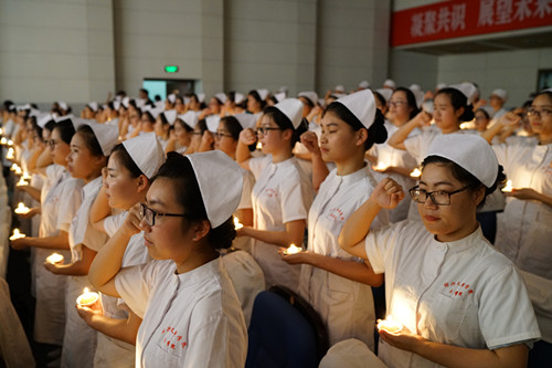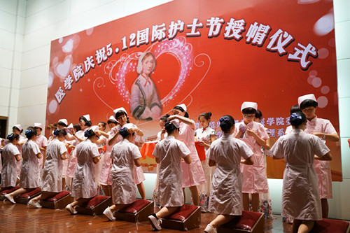 “我宣誓:以自己的真心、爱心、责任心对待我所护理的每一位病人……”5月11日晚,在校河西校区铁城科教馆举办的庆祝5·12国际护士节授帽仪式上,201位即将踏上实习护理岗位的护理学子在王志娟女士领誓下,庄严宣誓。