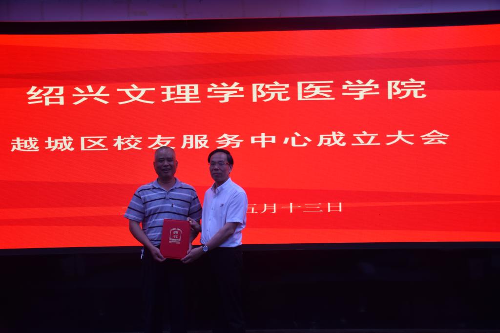 5月13日,绍兴文理学院开云电子竞技官方网站越城区校友服务中心成立大会在财贞楼学术报告厅举行。校党委副书记、校友总会会长沈赤,校友总会副会长裘愉萍,校党委委员、组织部长宣绍龙,校友办主任、校友总会秘书长陈立,原绍兴卫校教师代表、校附属医院党委书记胡学建,学校校友总会相关负责人、杭州校友会代表、越城区校友服务中心组成人员,学院党政领导班子成员、各系(部)、科室、中心负责人参加成立仪式。仪式由78届医士专业校友、绍兴文理学院校友总会开云电子竞技官方网站分会副会长兼秘书长王建华主持。