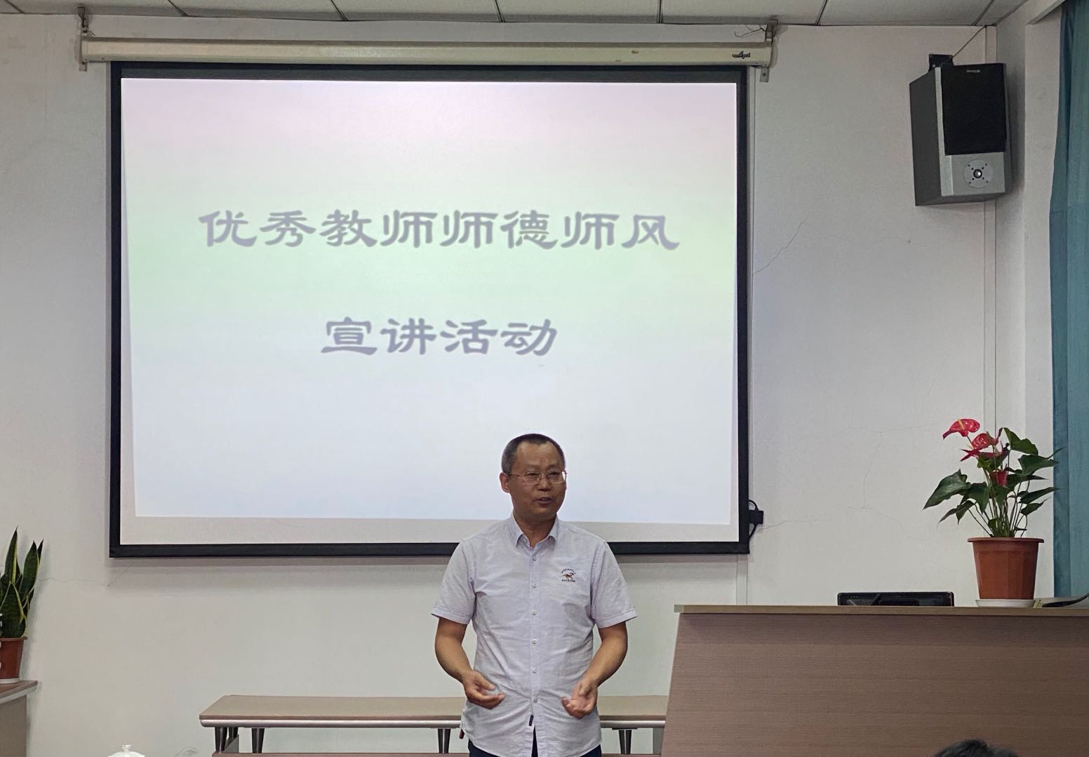 6月24日,学院举行优秀教师师德师风宣讲暨师德专题学习研讨活动,这也是学院师德专题教育“八个一”活动。院党委书记夏瑞明、党委副书记金坚强、副院长陈三妹,教师发展中心主任刘文庆,新医科教育研究所主任俞朝阳,部分中层干部、青年教师参加活动。