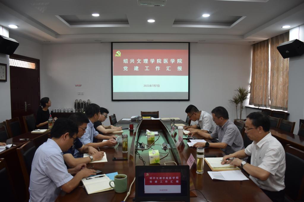 7月7日,学校党委副书记沈赤,校党委委员、组织部长宣绍龙,党委组织部组织科科长王颖一行三人来学院检查调研党建工作。院党委书记夏瑞明、常务副院长葛建荣、党委副书记金坚强和副院长陈三妹等参加会议。