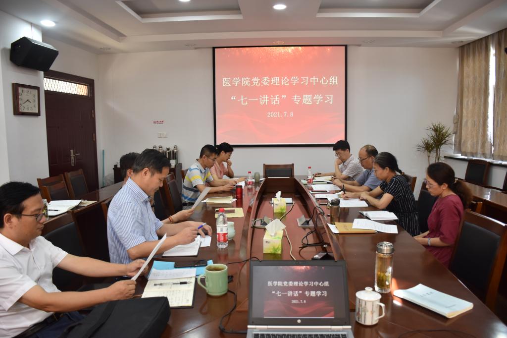 7月8日下午,学院党委理论学习中心组在行政楼219会议室开展习近平总书记“七一”重要讲话精神专题学习,学院中层领导干部、党委委员及中心组成员参加,夏瑞明书记主持并导学。