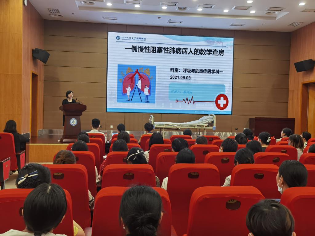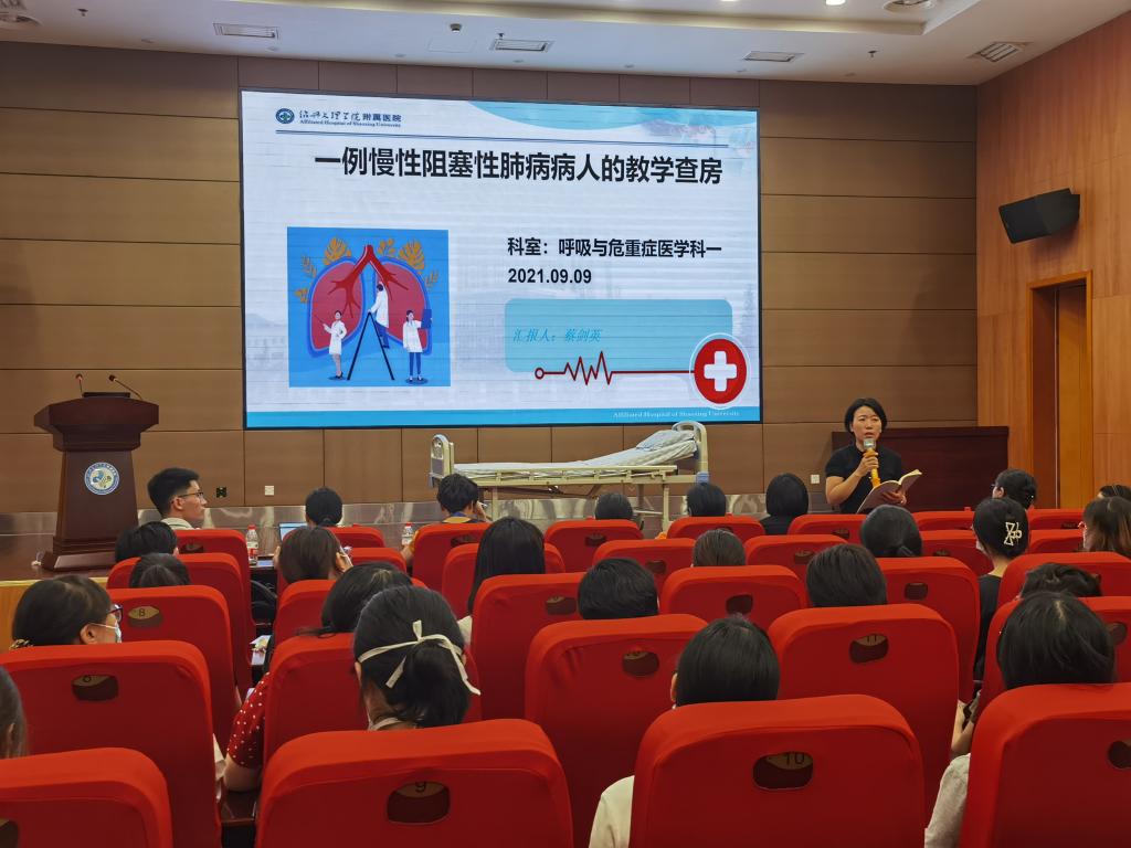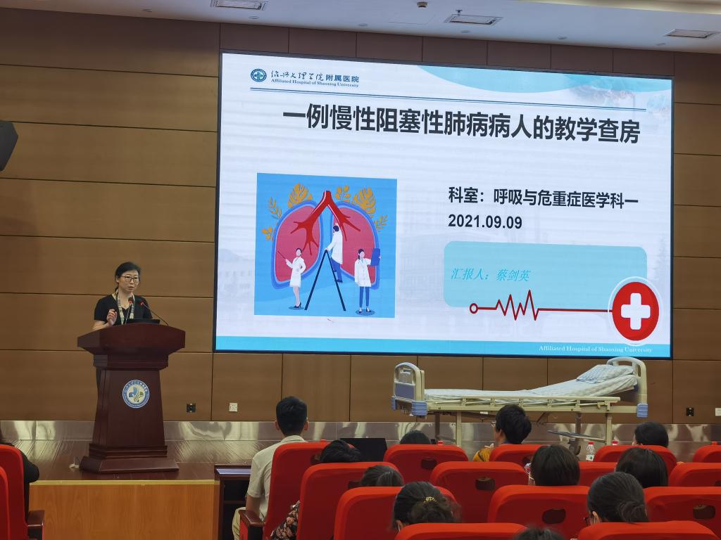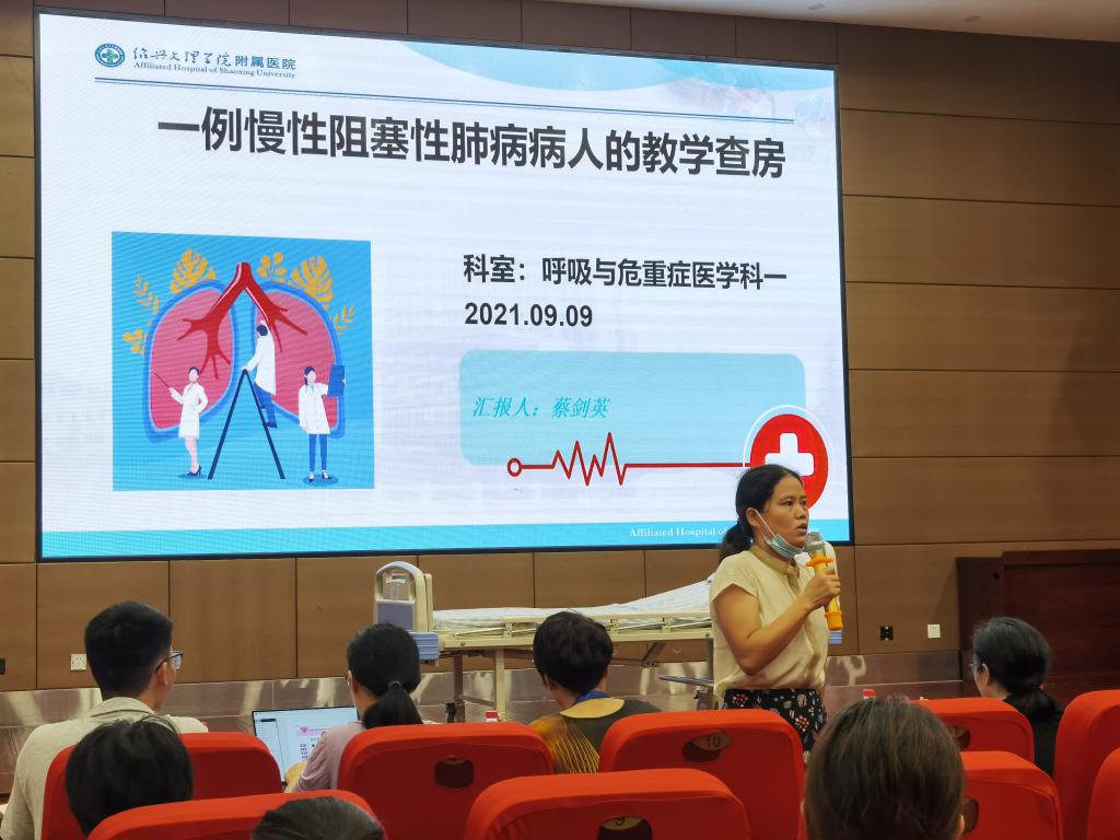 研讨会就一例慢性阻塞性肺疾病病人的教学查房进行展开,主查科室为呼吸与危重症医学科,由临床护士蔡建英进行汇报,护理学2018级学生舒炜斌进行主查。查房小组从相关知识回顾、病史汇报、体格检查、护理诊断、护理措施等几方面进行了查房汇报。