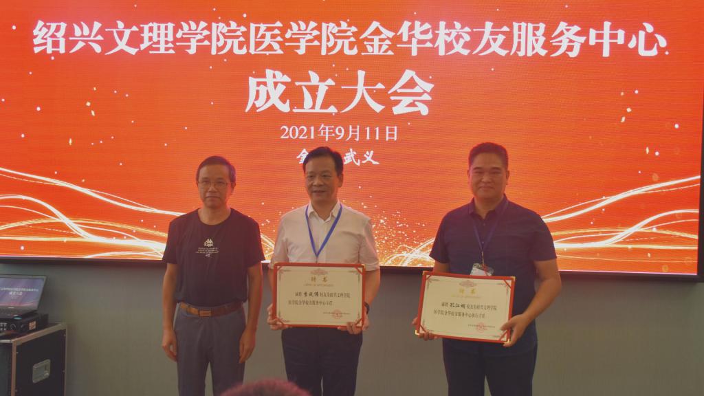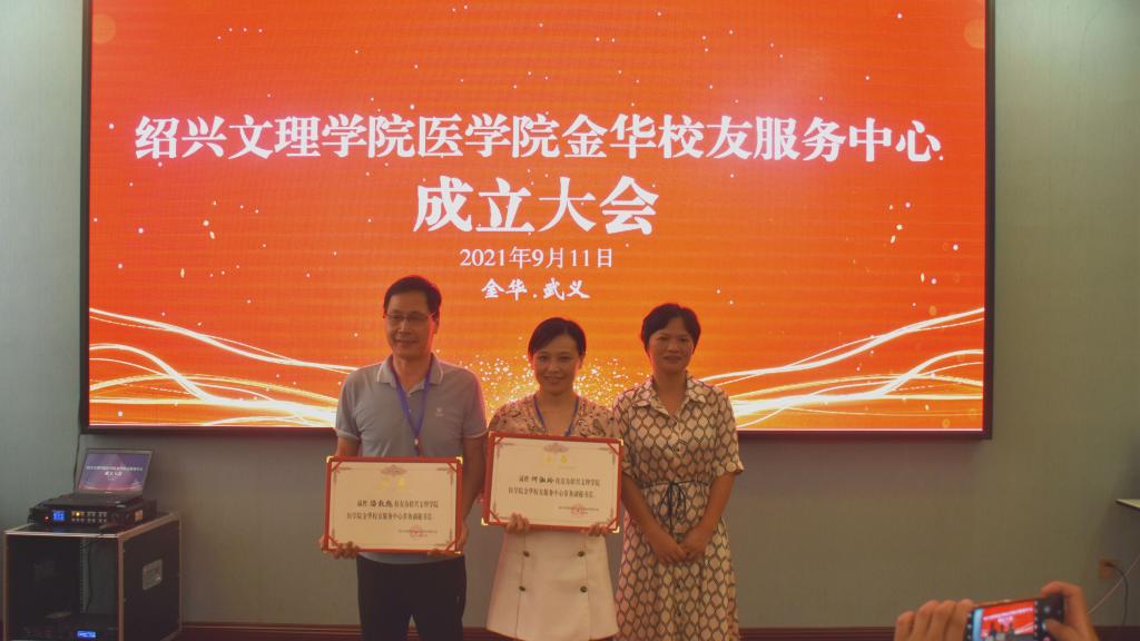 沈赤、杨大明为开云电子竞技官方网站金华校友服务中心授牌,服务中心主任李成伟、秘书长祝维松接牌。