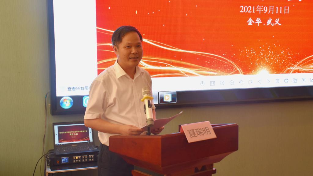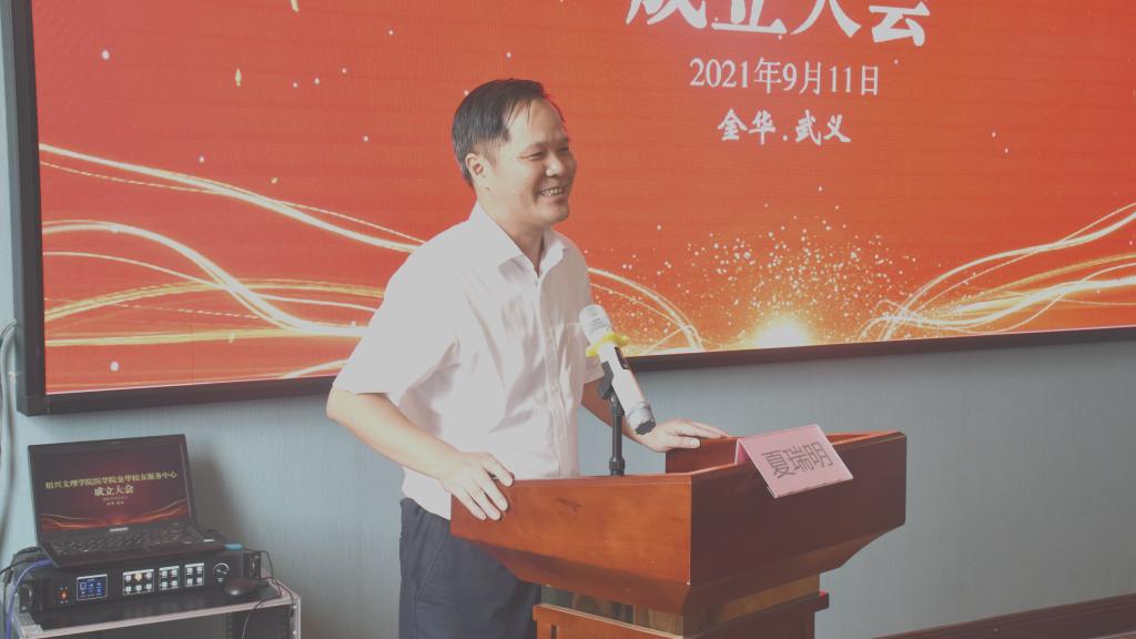 夏瑞明对校友毕业后取得的成绩和金华校友服务中心成立表示祝贺,对校友们长期支持母校建设发展和无私服务表示感谢,对校友们在百忙中担任服务中心的工作表示敬意;希望中心能积极开展多种形式的活动,进行多种途径的交流,表达多种层面的关心。