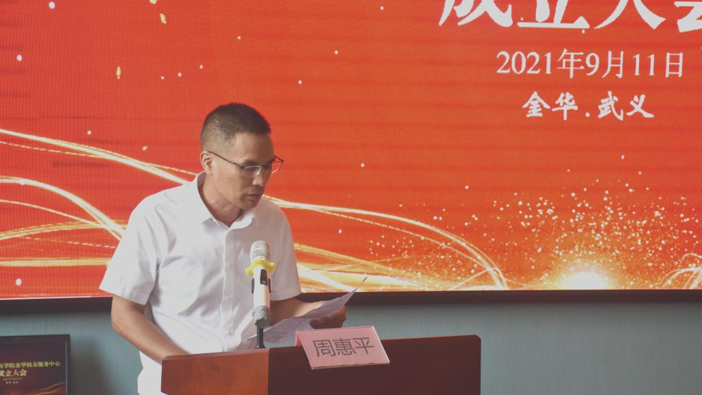 影像专业代表、1982届放医专业校友、永康市第一人民医院放射科原主任陈宏,计生专业代表、1993届计生专业校友、磐安县盘峰乡政府人大主席周惠平,护理专业代表、1997届护理专业校友、兰溪人民医院手术室护士长郑丽华作为校友代表发言。