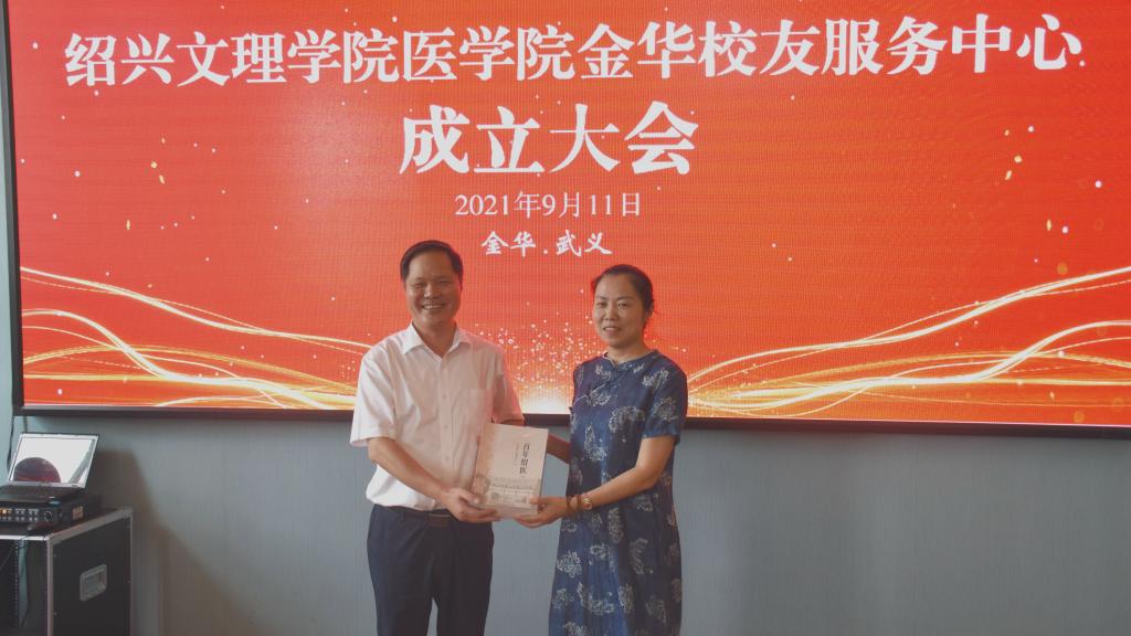 杨大明和夏瑞明为校友代表赠送开云电子竞技官方网站院史《百年绍医》。