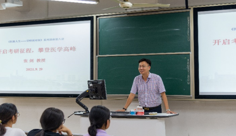 为了提高临床医学专业学生考研积极性,帮助同学做好学业规划,基础医学部举行“医路人生 导师面对面”》列讲座第八讲,邀请学院副院长张剑为临床卓越班做题为“开启考研征程 攀登医学高峰”的考研专题讲座。讲座由基础医学部陈佳玉教授主持,卓越医师203、214班全体同学和193班部分同学参加。